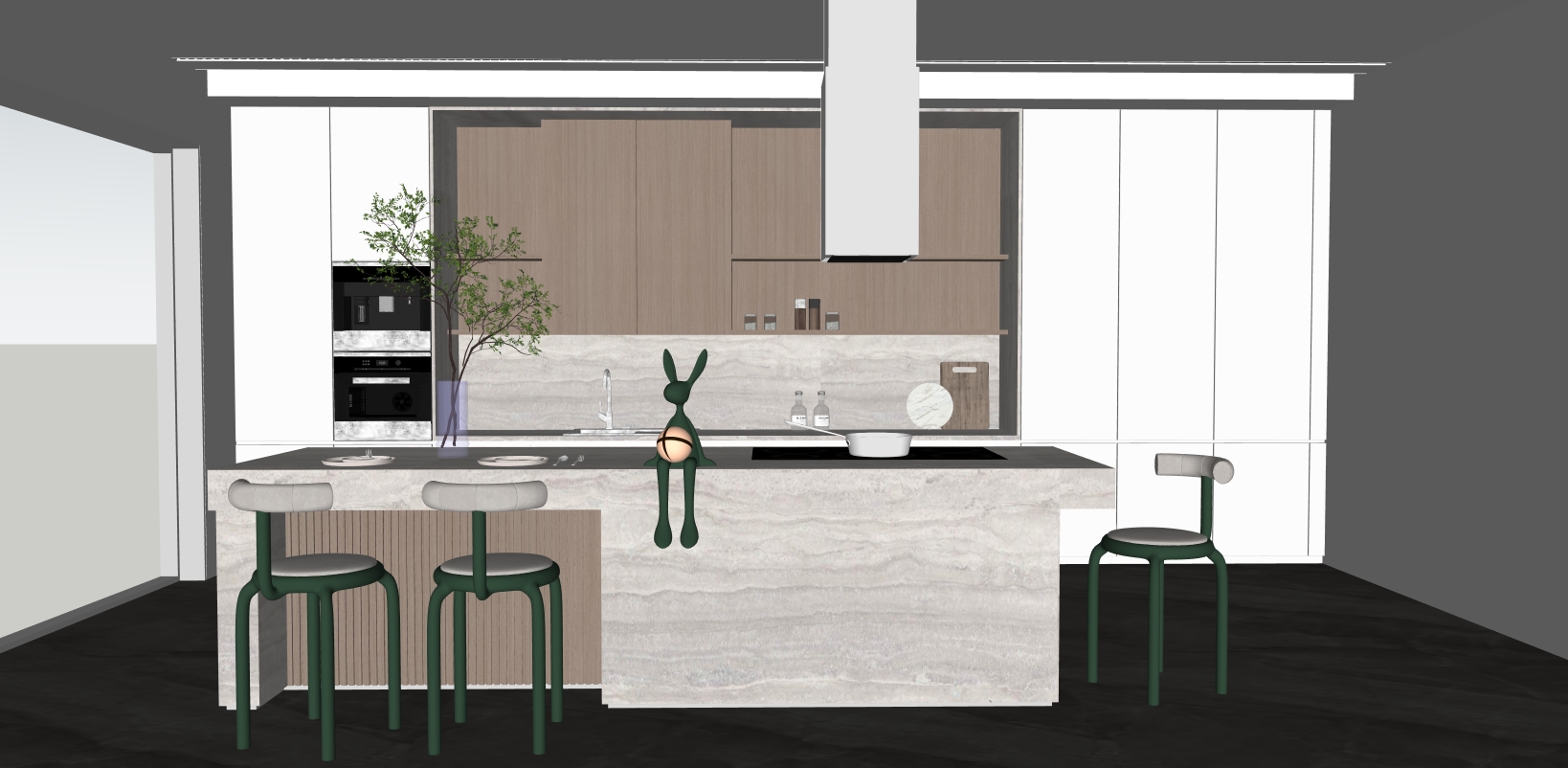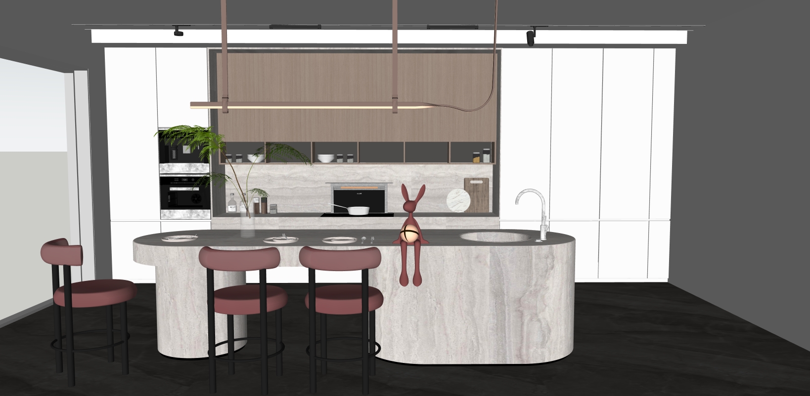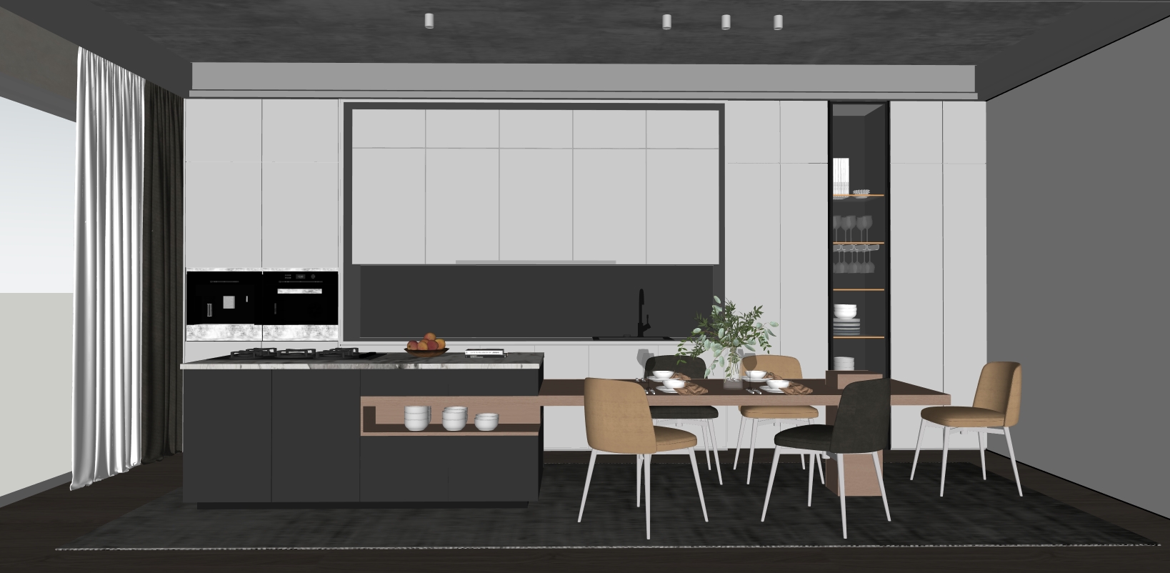 Chaque cuisine est entièrement modélisée sous SketchUp. Les ambiances associent des lignes contemporaines, des façades claires et des finitions bois pour un rendu à la fois moderne, chaleureux et premium.